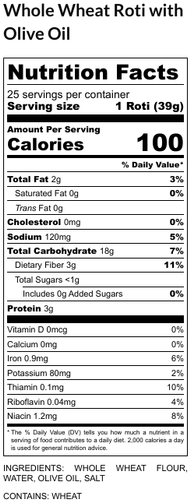 Made using just 3 simple ingredients: 100% whole wheat atta, extra virgin olive oil and salt.